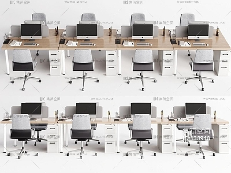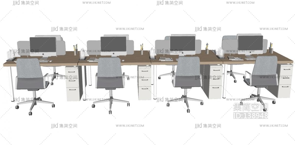 现代联排办公桌椅,员工工位SU模型 su草图模型下载 [模型ID:138948]