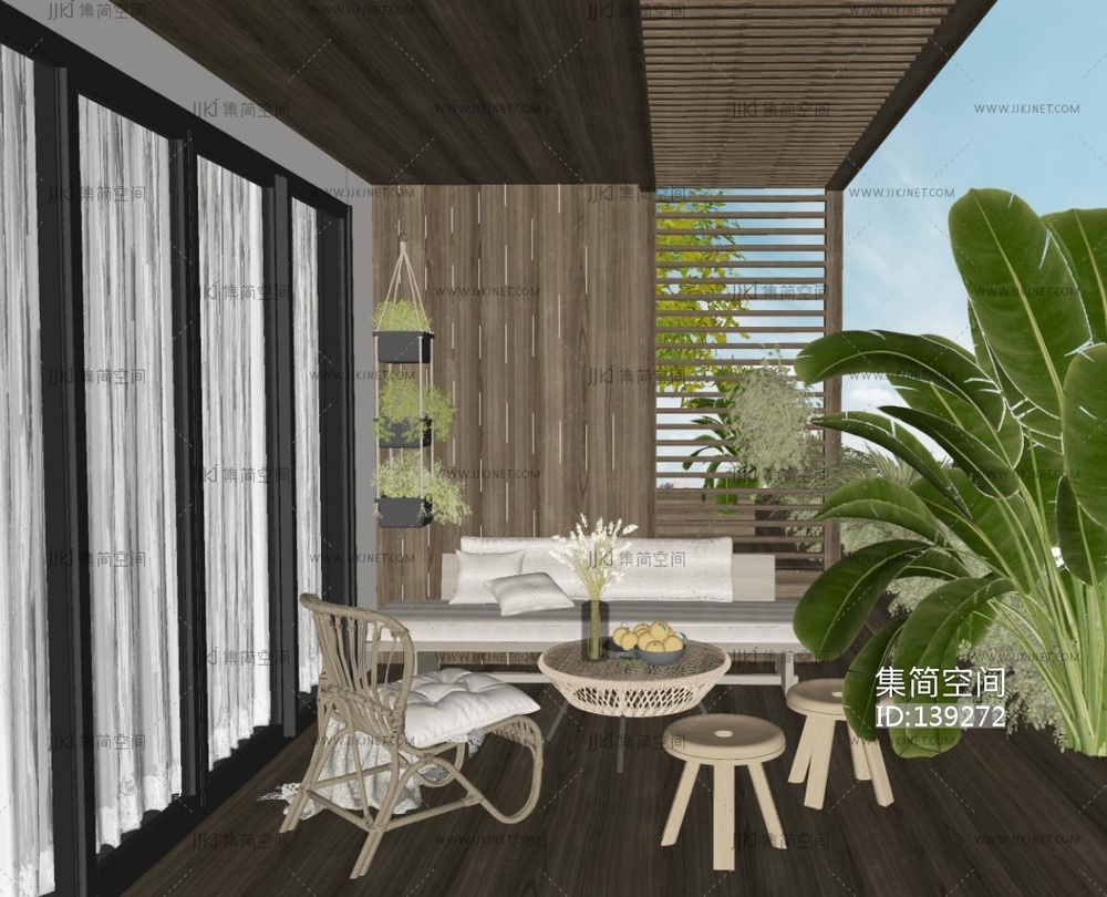 现代家居阳台SU模型 su草图模型下载 [模型ID:139272]