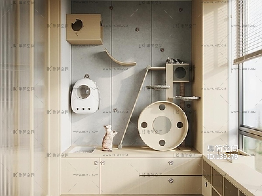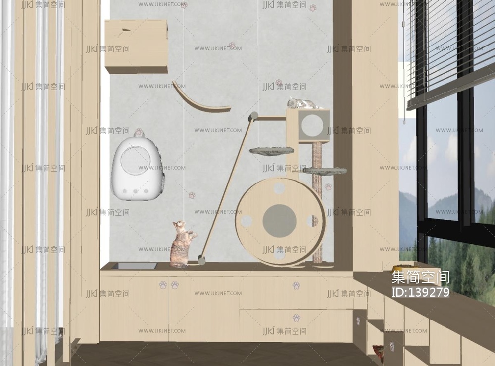 侘寂风家居阳台,猫房SU模型 su草图模型下载 [模型ID:139279]