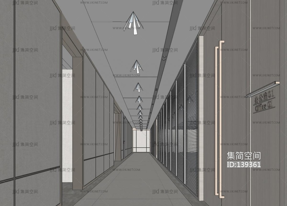 现代办公过道SU模型su草图模型下载