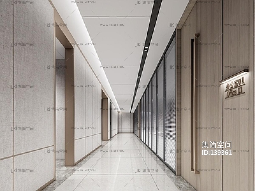现代办公室走廊SU模型su草图模型下载