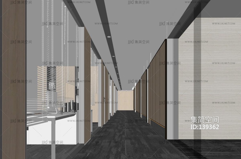现代办公室过道SU模型 su草图模型下载 [模型ID:139362]