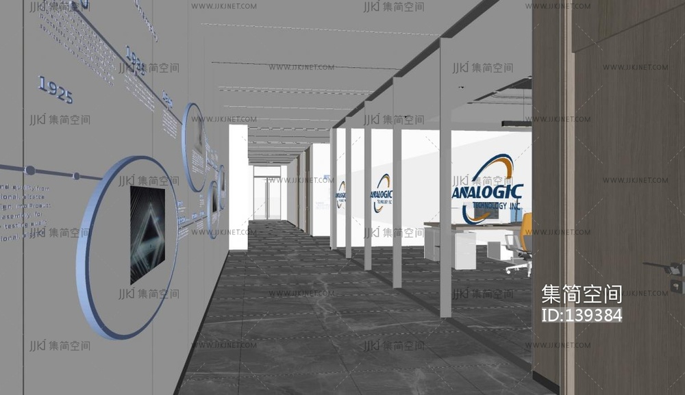 现代公司文化走道SU模型su草图模型下载