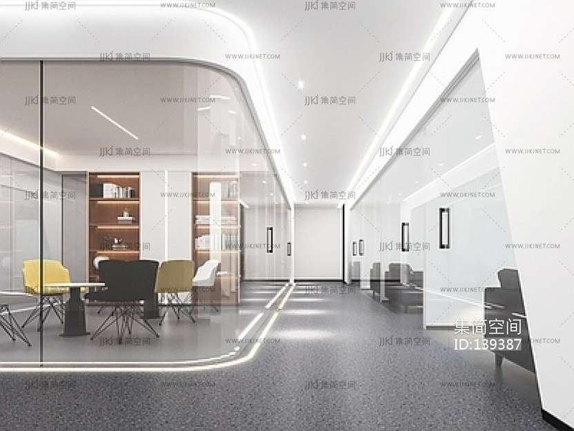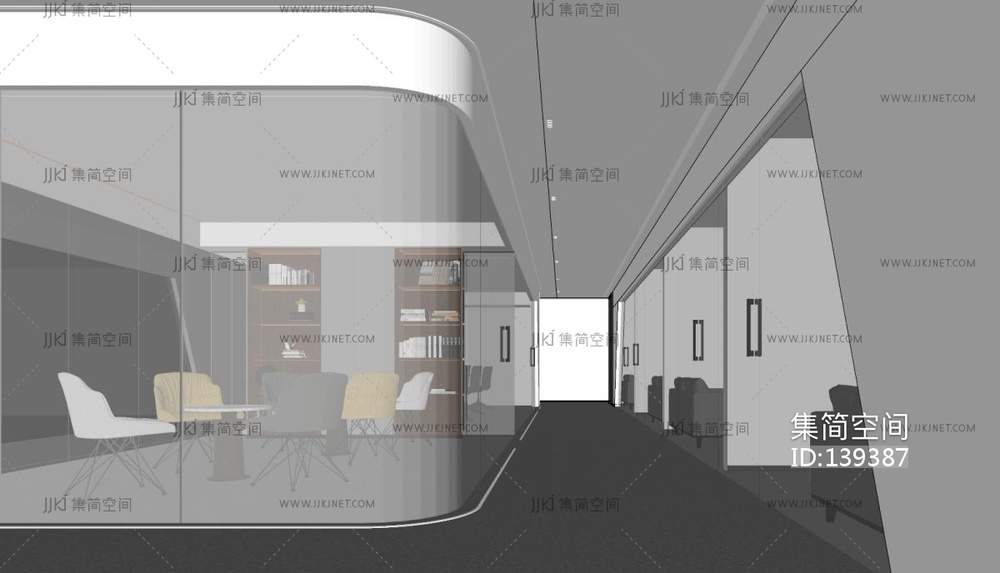 现代办公室走廊SU模型 su草图模型下载 [模型ID:139387]