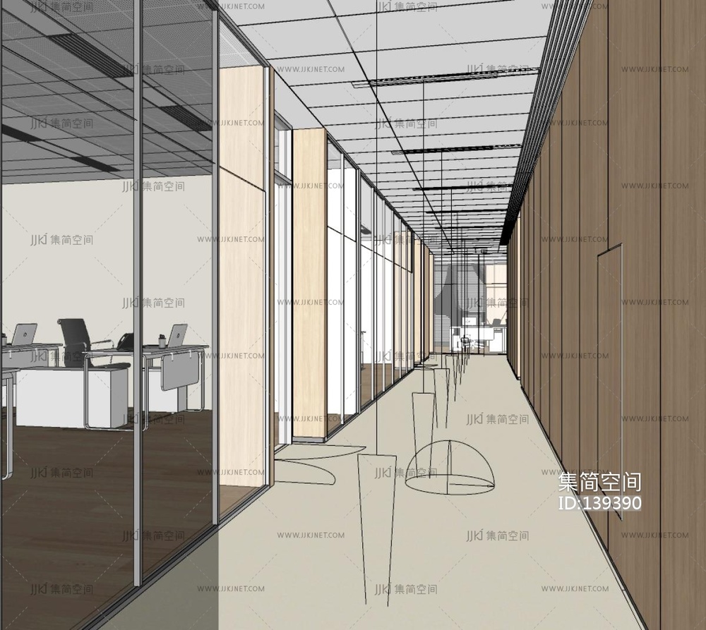 现代办公过道SU模型 su草图模型下载 [模型ID:139390]
