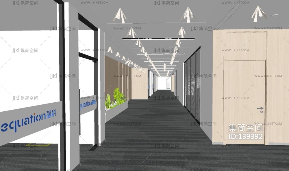 现代办公过道SU模型 su草图模型下载 [模型ID:139392]