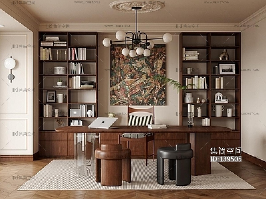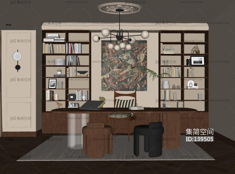 现代中古书房SU模型 su草图模型下载 [模型ID:139505]