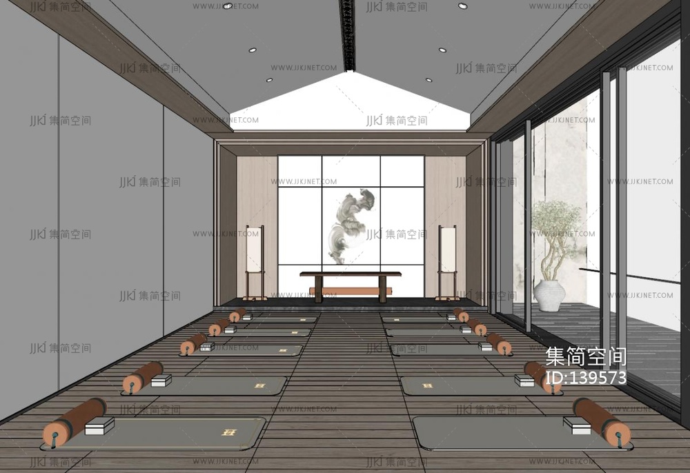 新中式瑜伽室SU模型 su草图模型下载 [模型ID:139573]