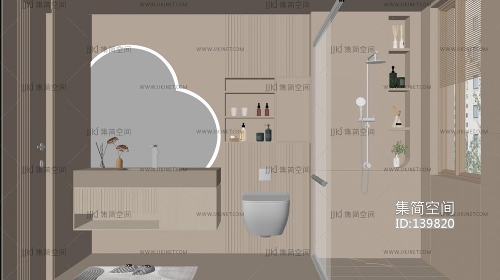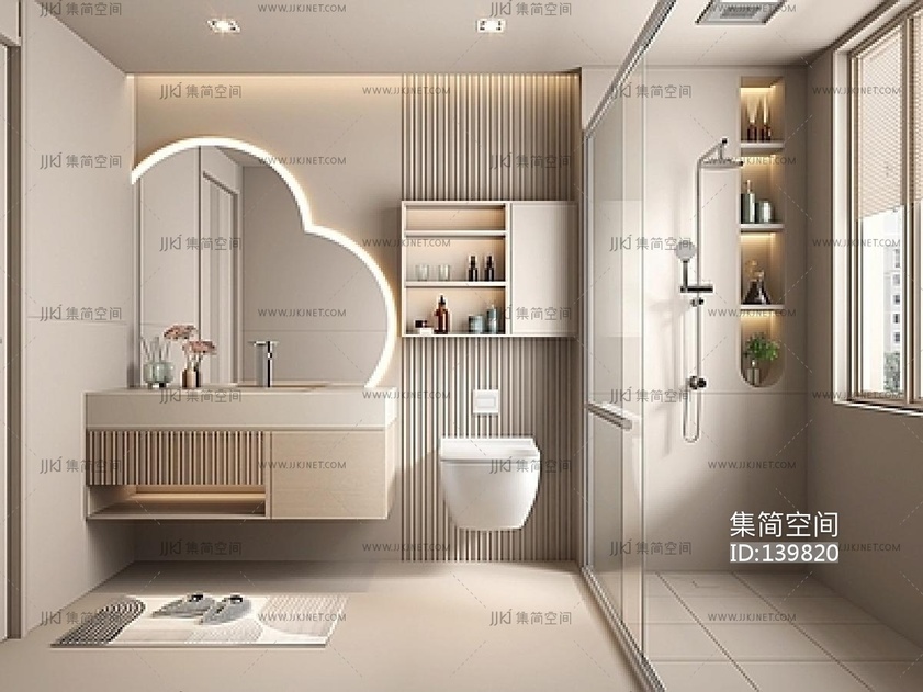 现代奶油风卫生间SU模型 su草图模型下载 [模型ID:139820]
