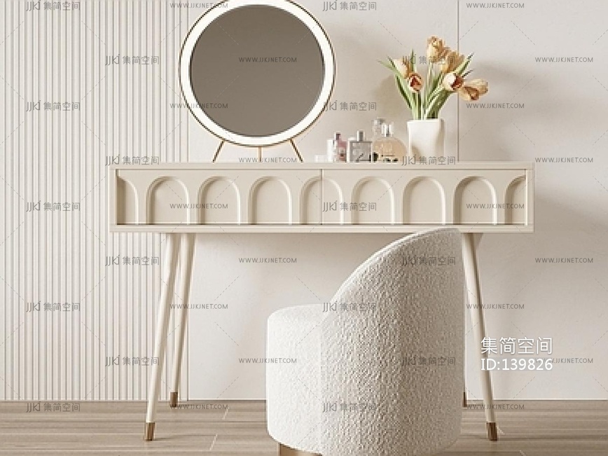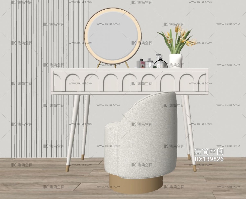 现代奶油风梳妆台SU模型 su草图模型下载 [模型ID:139826]