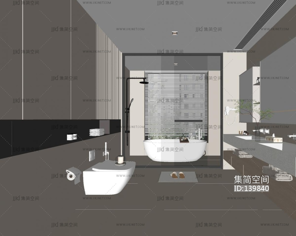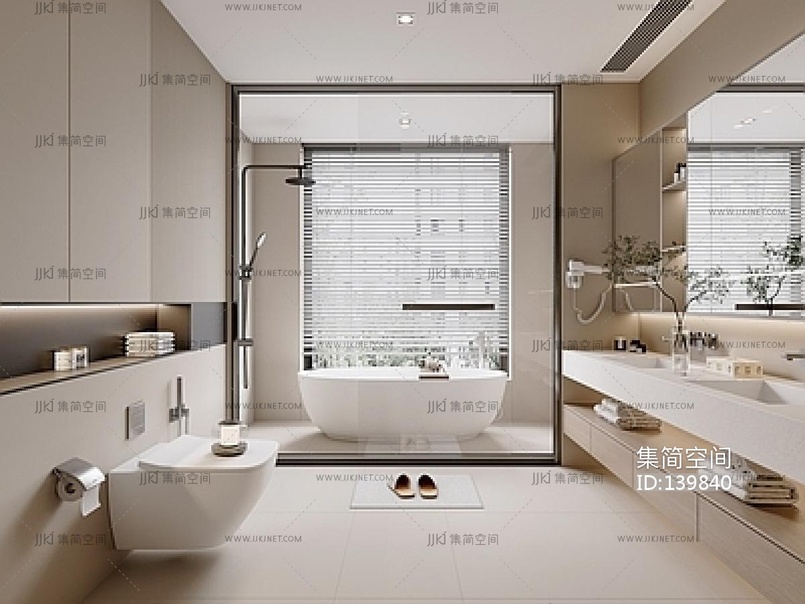 现代奶油风卫生间SU模型 su草图模型下载 [模型ID:139840]