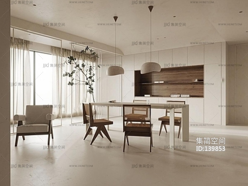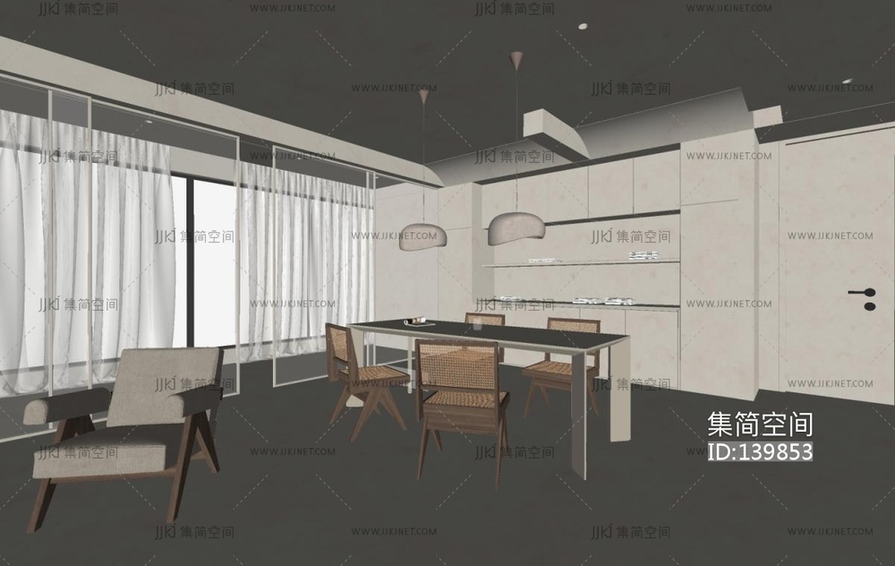 侘寂风餐厅SU模型 su草图模型下载 [模型ID:139853]