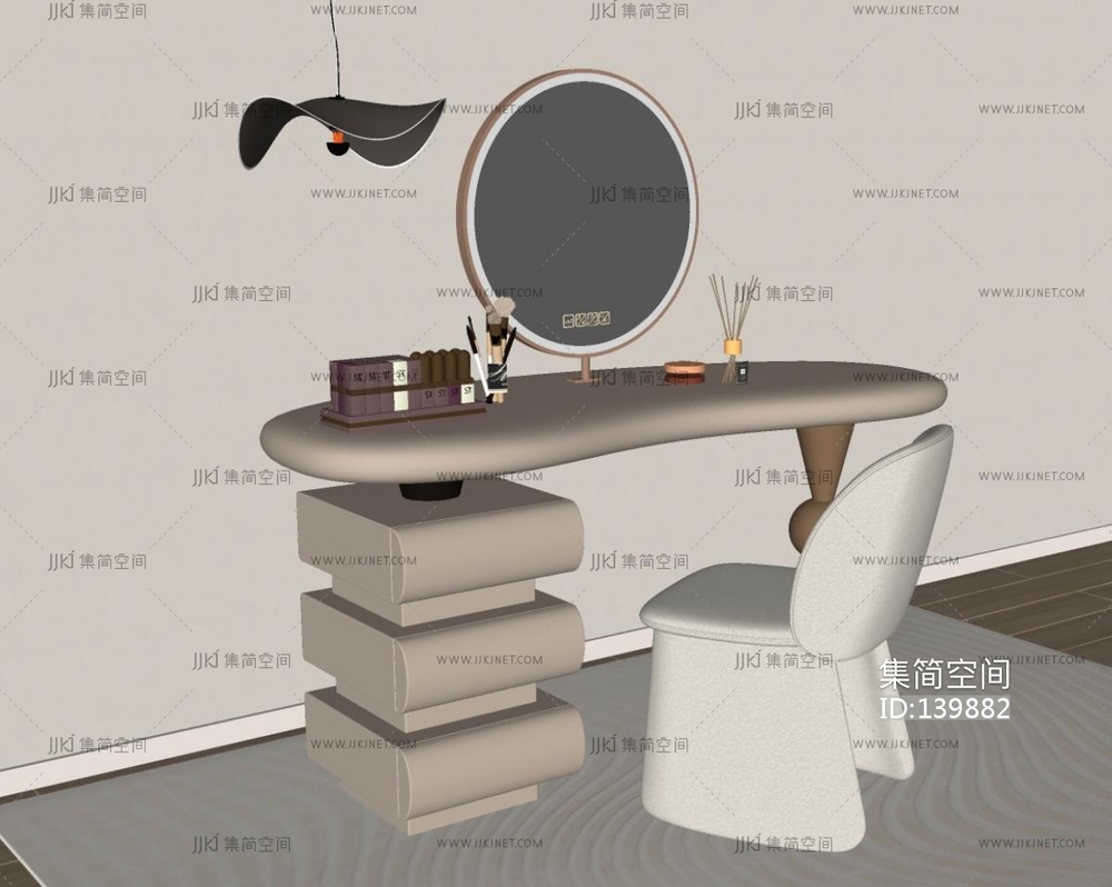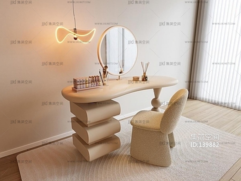 现代奶油风妆台妆凳组合SU模型I su草图模型下载 [模型ID:139882]