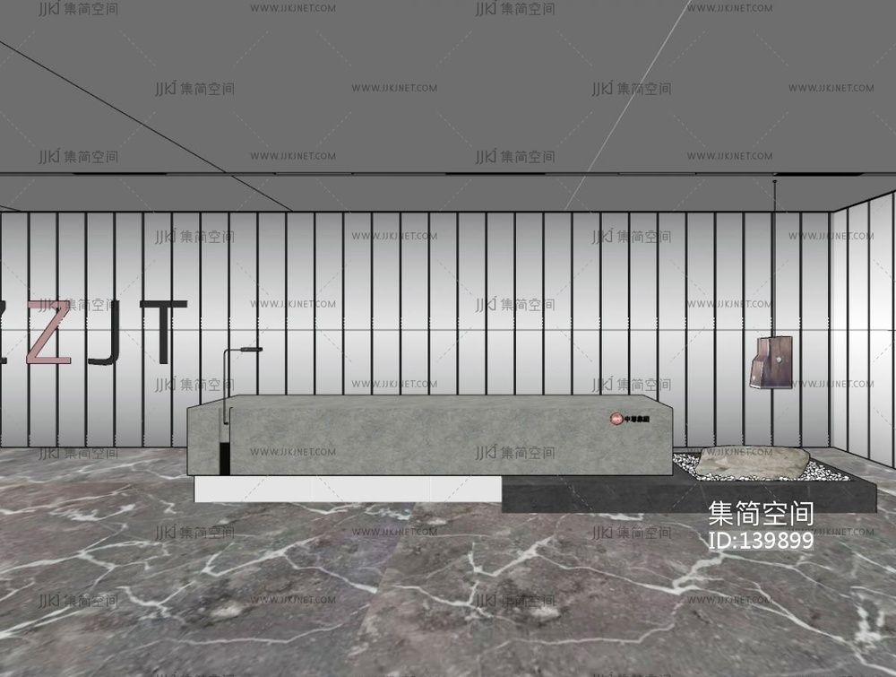 现代公司办公室前台,服务台SU模型 su草图模型下载 [模型ID:139899]