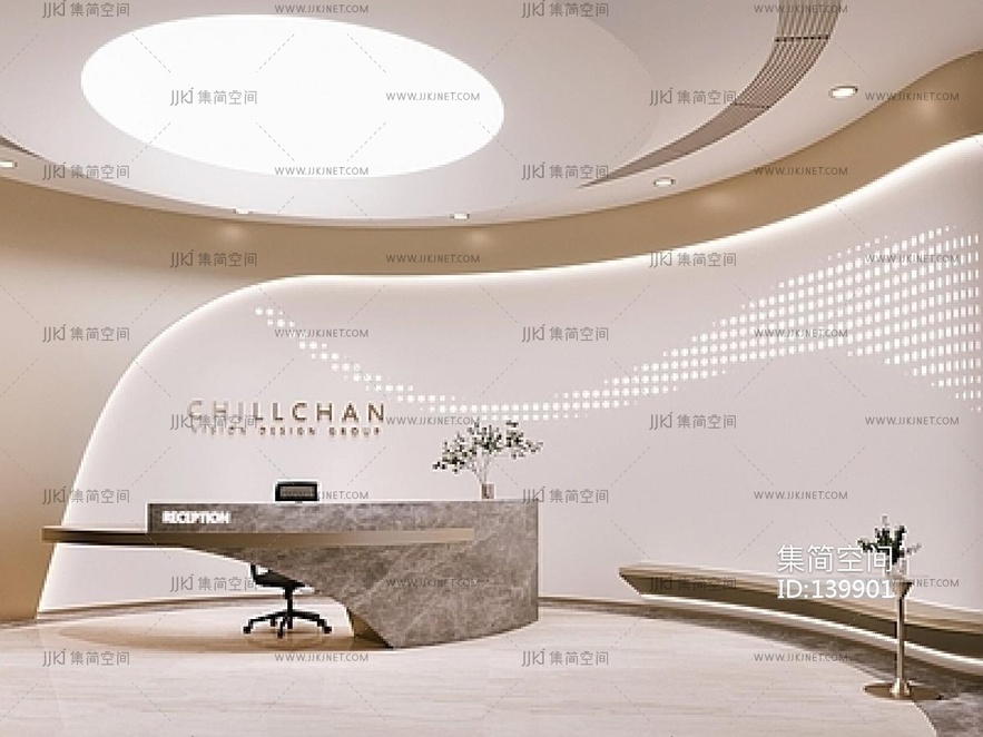 现代办公前台,服务台SU模型 su草图模型下载 [模型ID:139901]