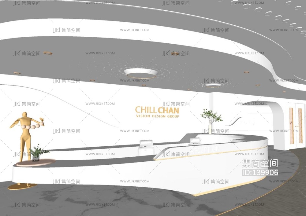 现代公司前台,服务台SU模型 su草图模型下载 [模型ID:139906]
