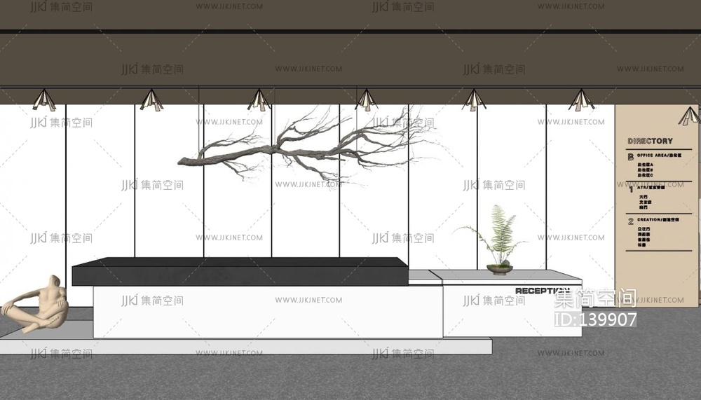 现代办公前台,服务台SU模型 su草图模型下载 [模型ID:139907]