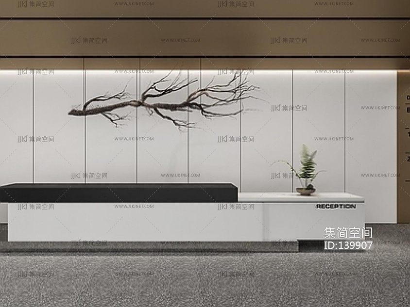 现代办公大厅前台,服务台SU模型su草图模型下载