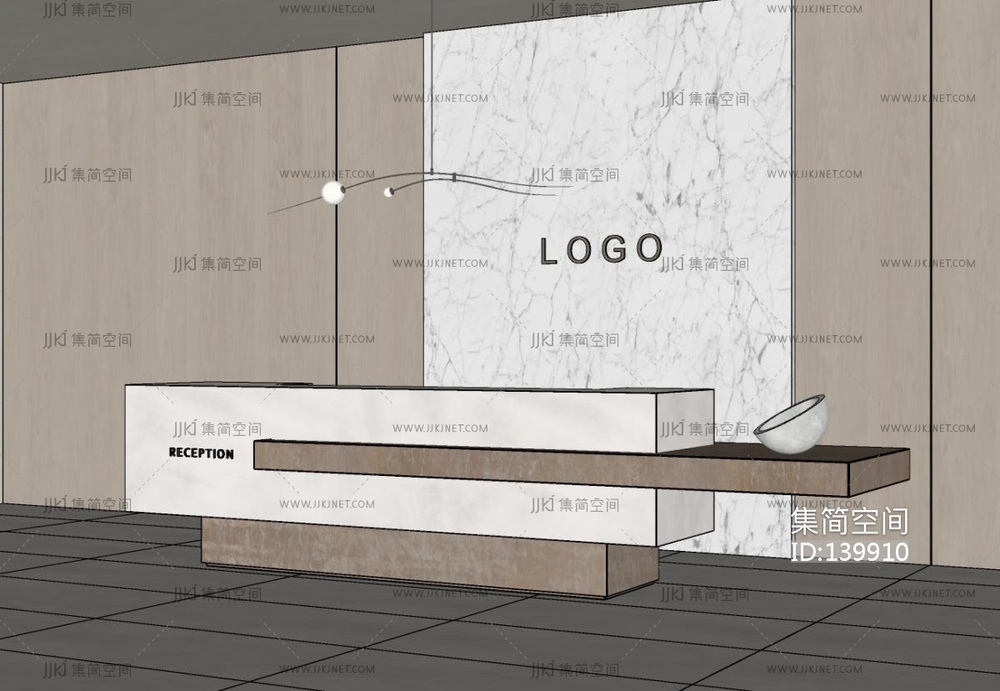 现代办公前台,接待台SU模型 su草图模型下载 [模型ID:139910]