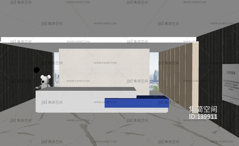 现代办公大厅前台,服务台SU模型 su草图模型下载 [模型ID:139911]