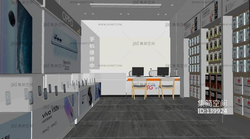现代手机专卖店SU模型 su草图模型下载 [模型ID:139924]