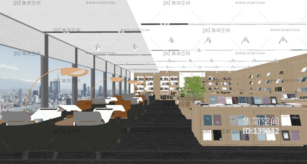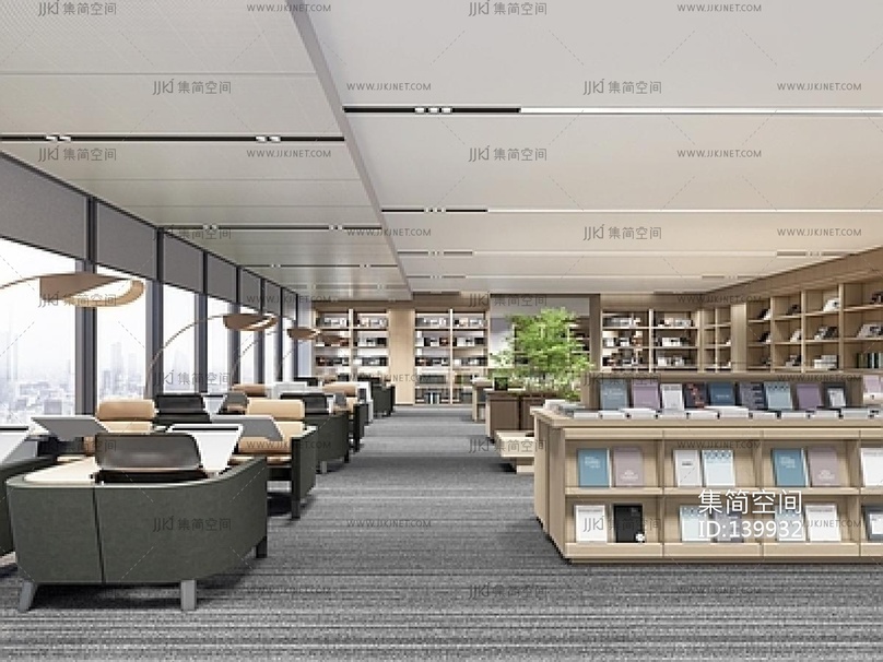 现代图书馆,阅览室SU模型 su草图模型下载 [模型ID:139932]