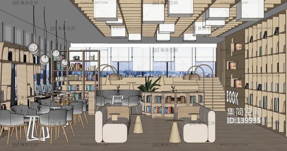 现代图书馆SU模型 su草图模型下载 [模型ID:139935]