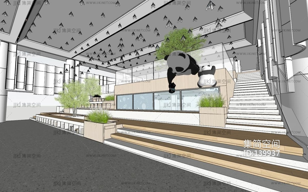 现代简约学校图书馆SU模型 su草图模型下载 [模型ID:139937]