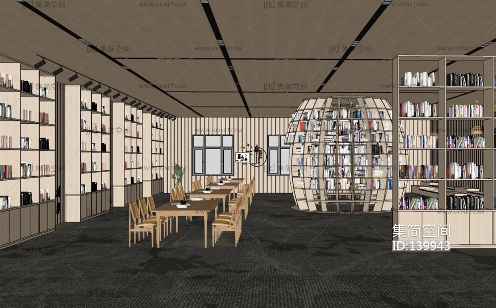 现代创意图书馆SU模型 su草图模型下载 [模型ID:139943]