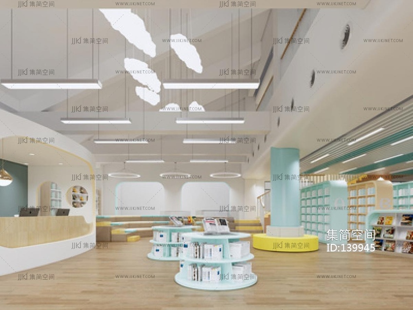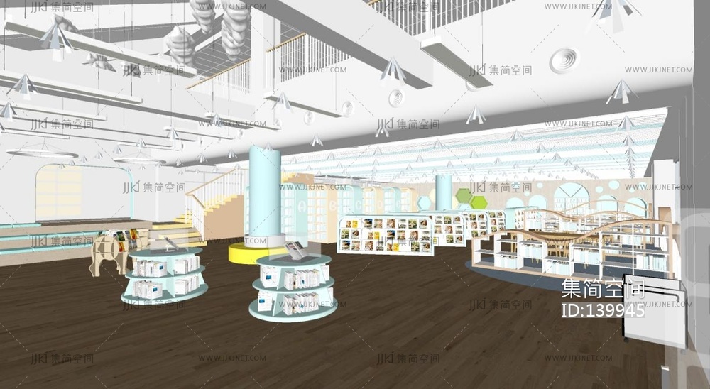 现代创意图书馆SU模型su草图模型下载
