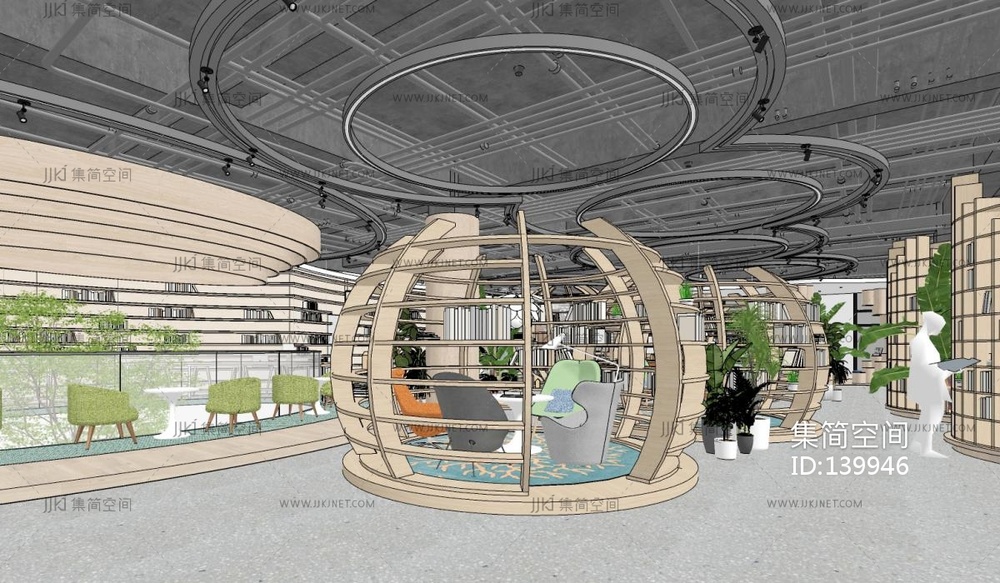 现代图书馆SU模型 su草图模型下载 [模型ID:139946]