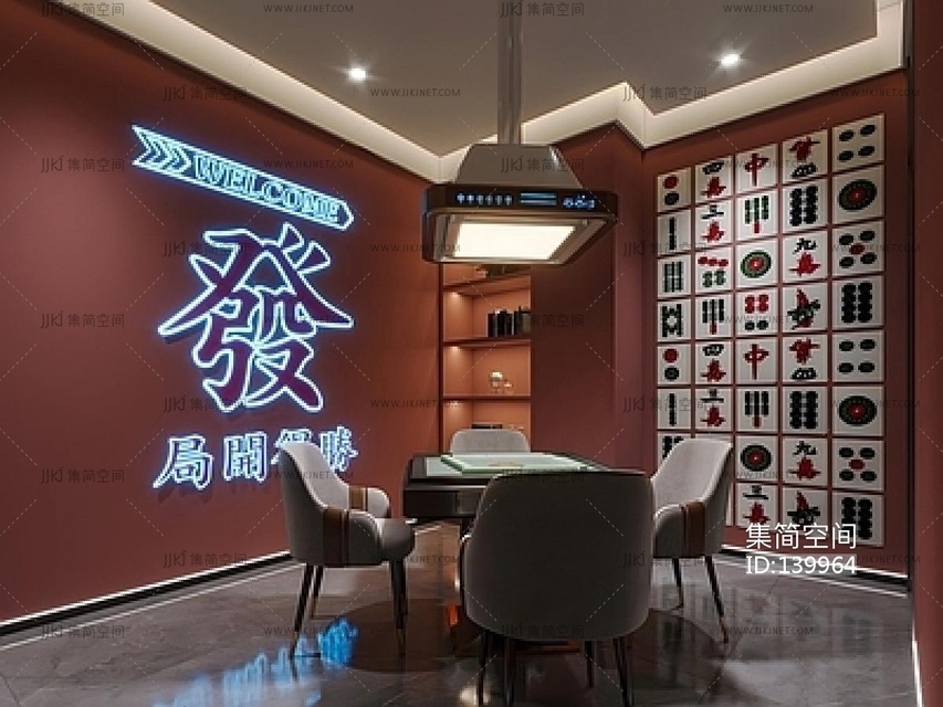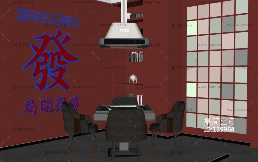 现代国潮棋牌室SU模型 su草图模型下载 [模型ID:139964]