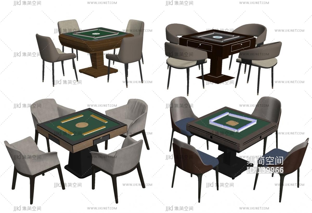 麻将桌椅组合SU模型 su草图模型下载 [模型ID:139966]