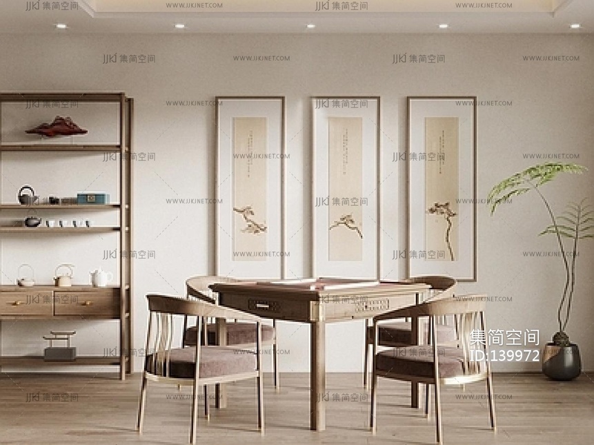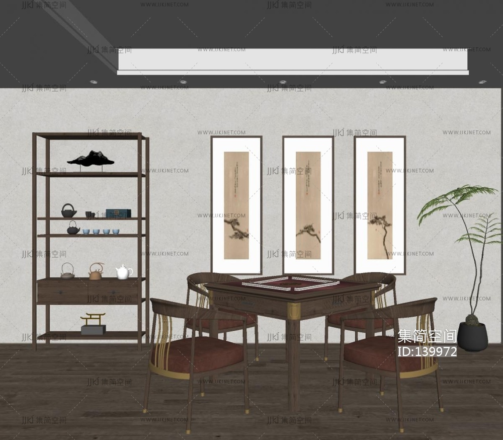 新中式棋牌室SU模型 su草图模型下载 [模型ID:139972]
