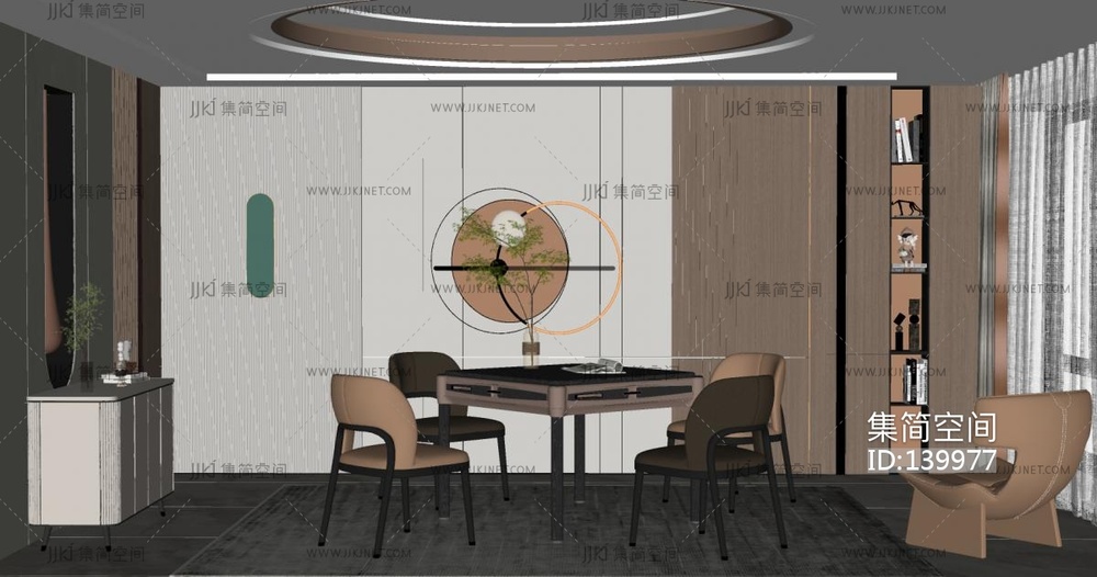 新中式棋牌室_麻将室SU模型su草图模型下载