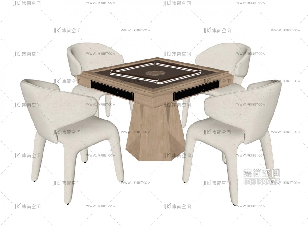 棋牌桌椅组合SU模型 su草图模型下载 [模型ID:139978]