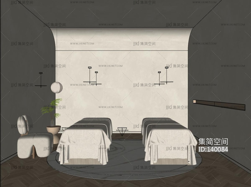 新中式美容院包房 SPA 足疗su草图模型下载