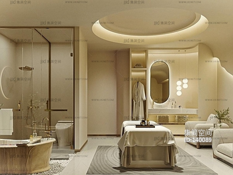 新中式美容院包房 SPA 足疗su草图模型下载