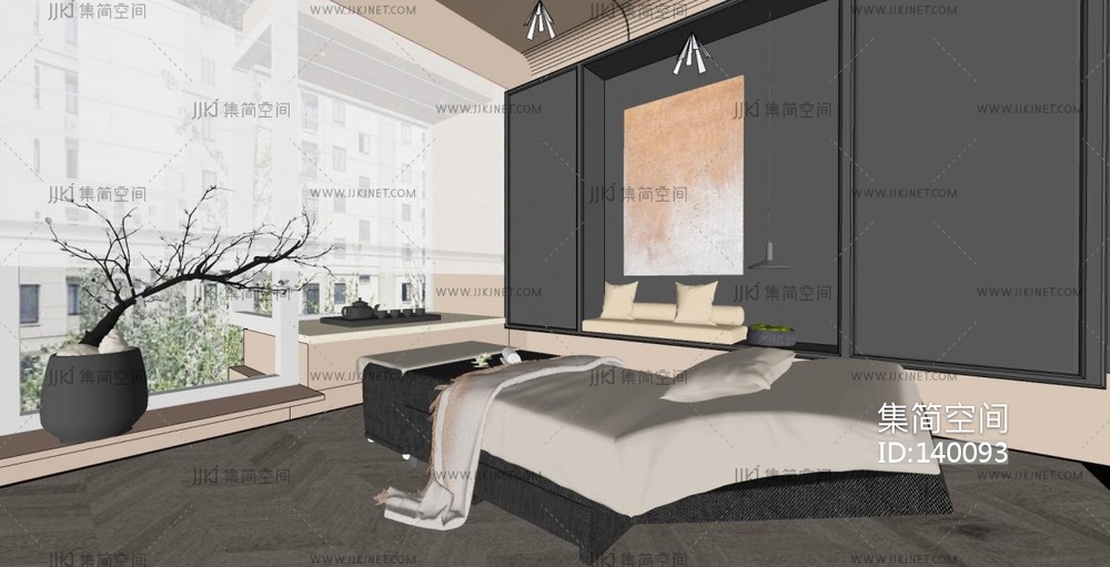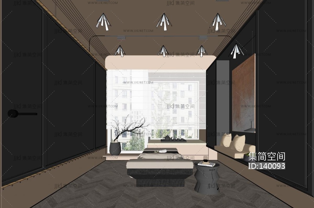 新中式美容店包间SU模型 su草图模型下载 [模型ID:140093]