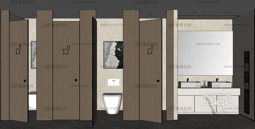 现代公共卫生间SU模型 su草图模型下载 [模型ID:140142]