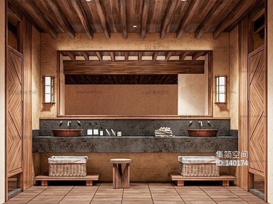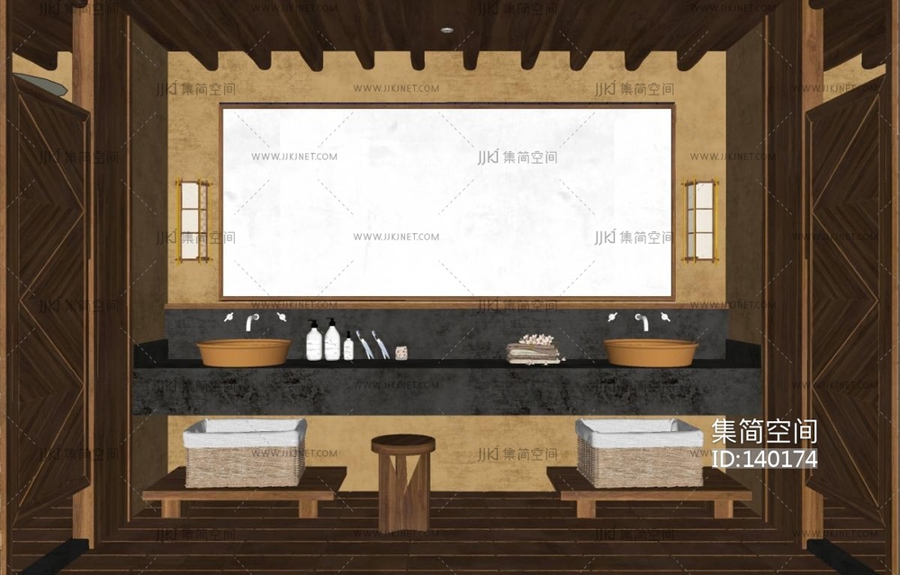 新中式公共卫生间SU模型 su草图模型下载 [模型ID:140174]