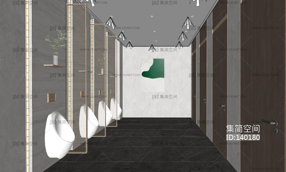 新中式公共卫生间小便器中式盆景隔断托盘SU模型su草图模型下载
