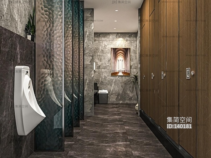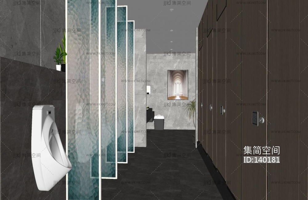 新中式公共卫生间小便器中式盆景隔断托盘SU模型su草图模型下载