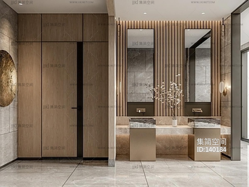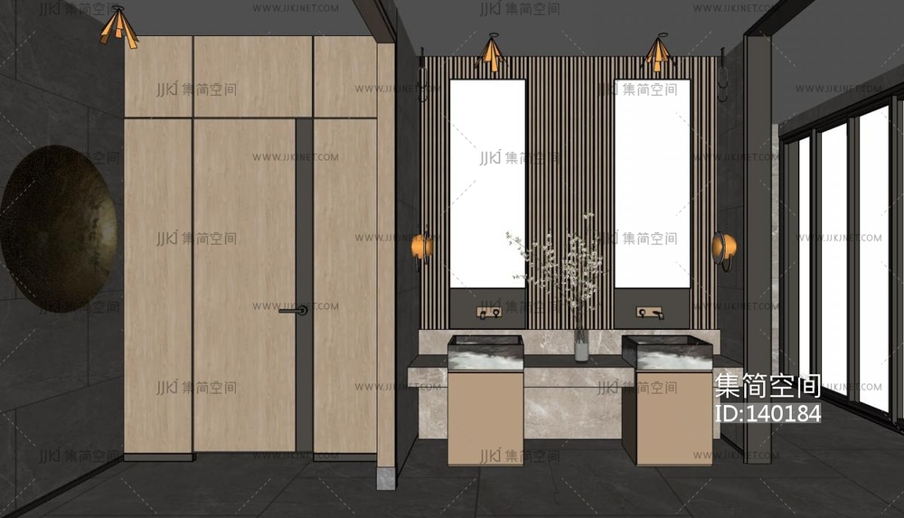 新中式公共卫生间小便器中式盆景隔断托盘SU模型su草图模型下载