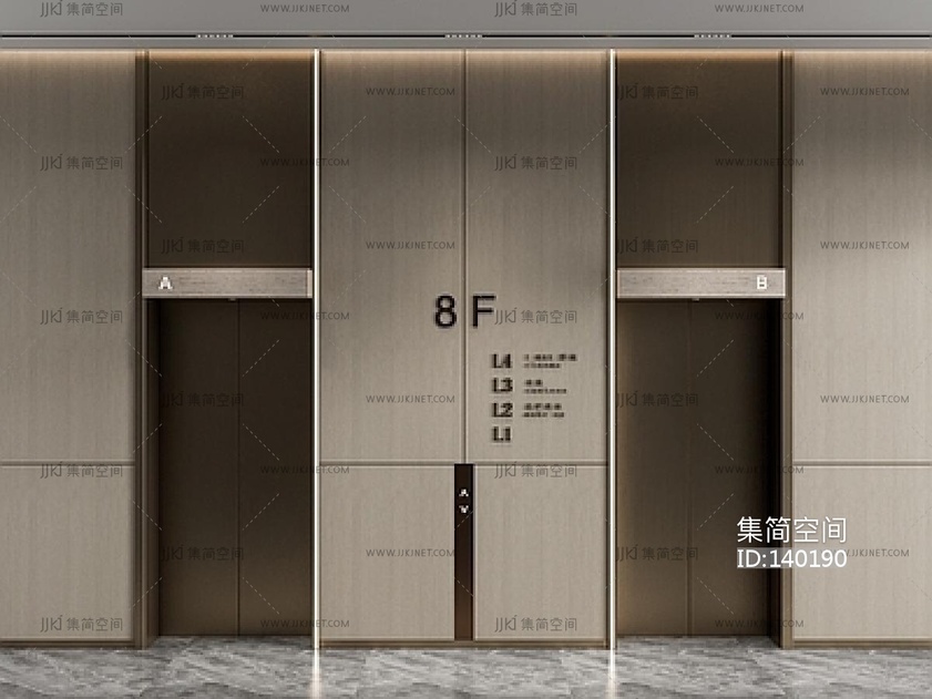 现代电梯间 su草图模型下载