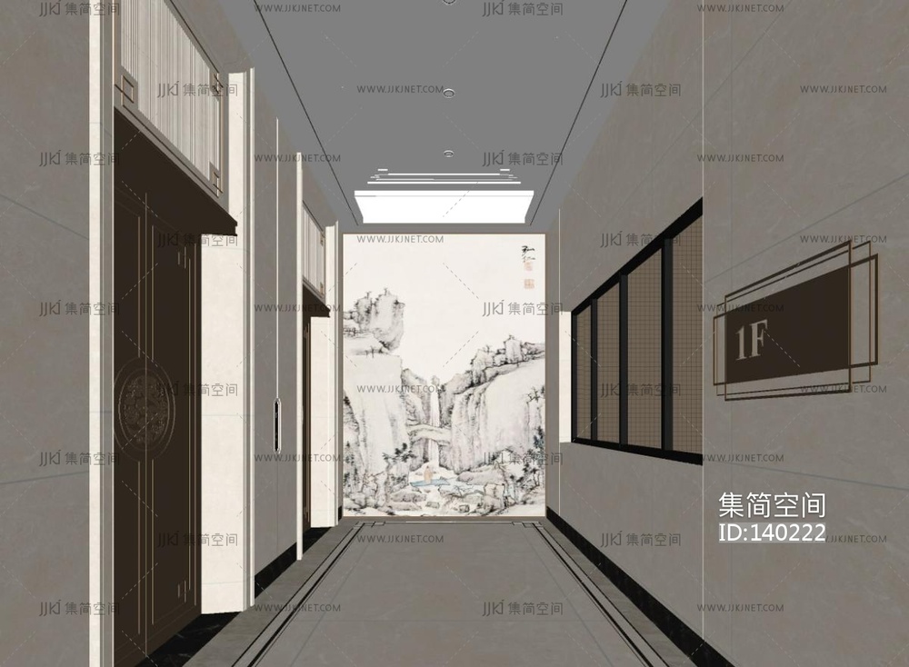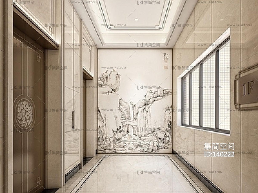 新中式电梯厅SU模型 su草图模型下载 [模型ID:140222]