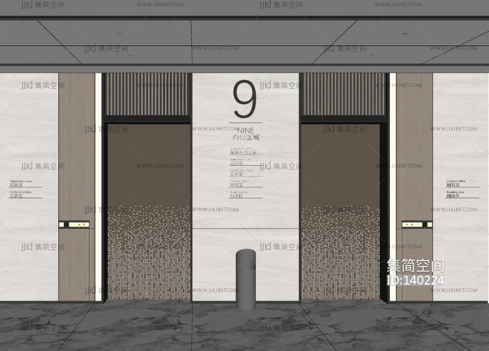 现代电梯厅SU模型 su草图模型下载 [模型ID:140224]