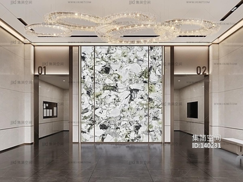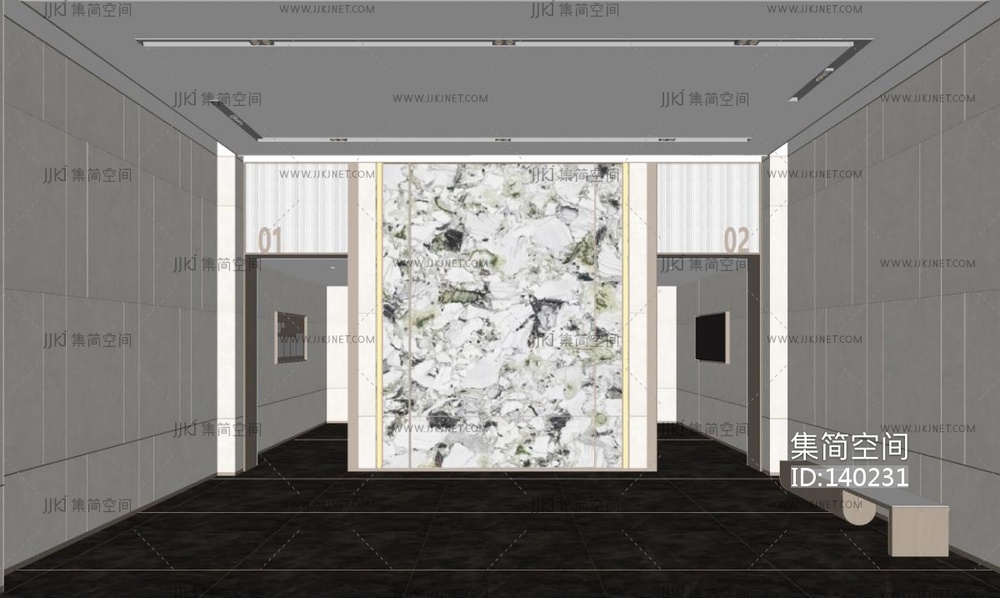 现代入户电梯厅SU模型 su草图模型下载 [模型ID:140231]