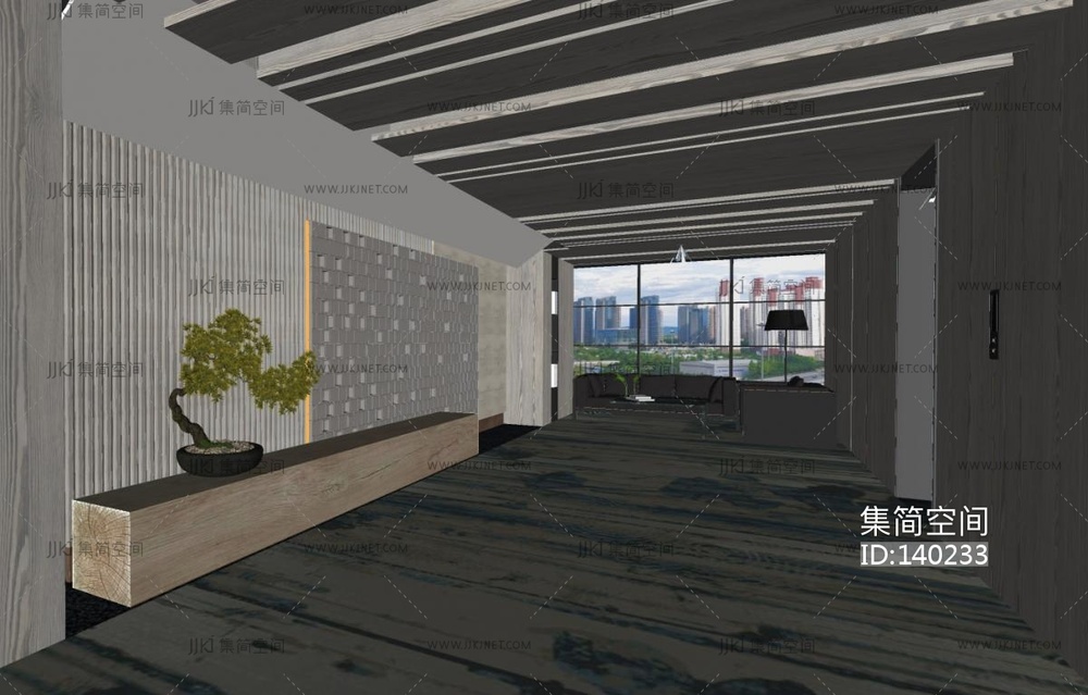 新中式电梯间SU模型 su草图模型下载 [模型ID:140233]