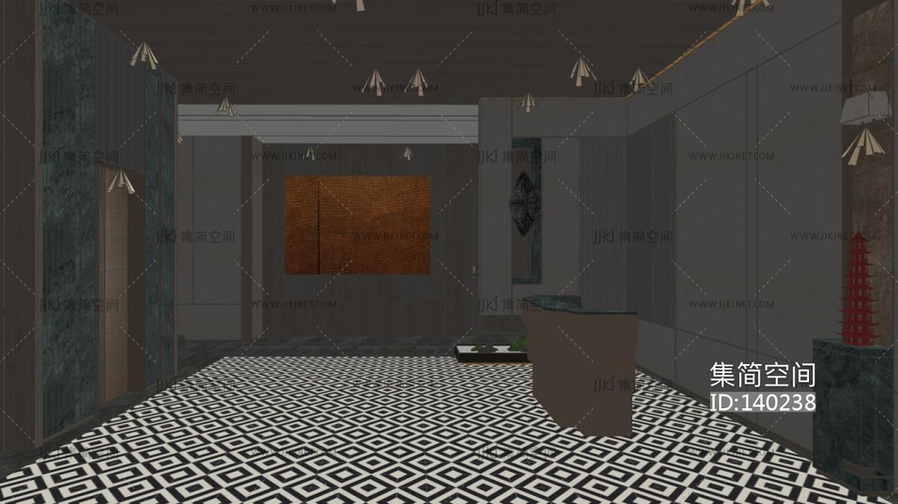 现代电梯厅SU模型 su草图模型下载 [模型ID:140238]